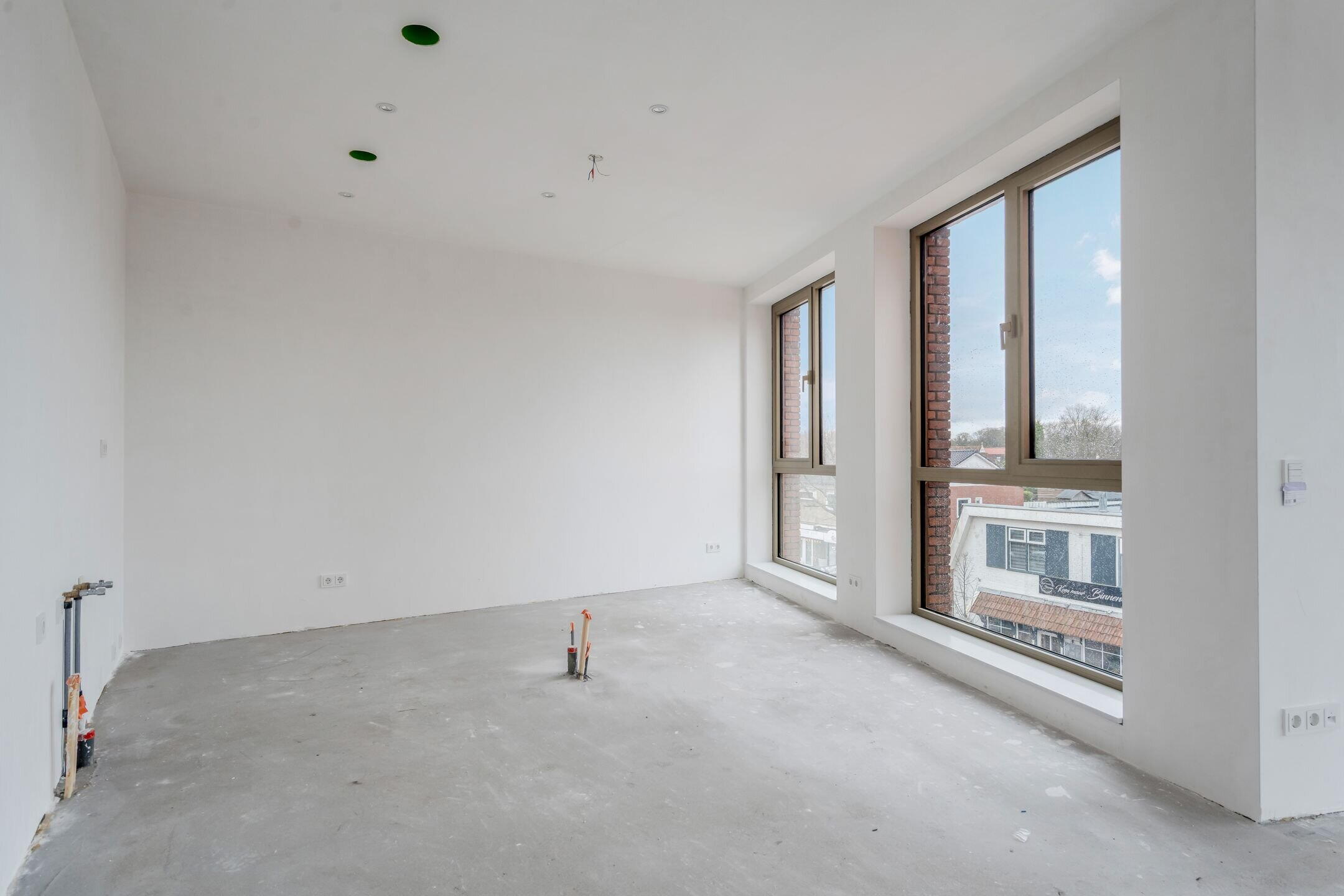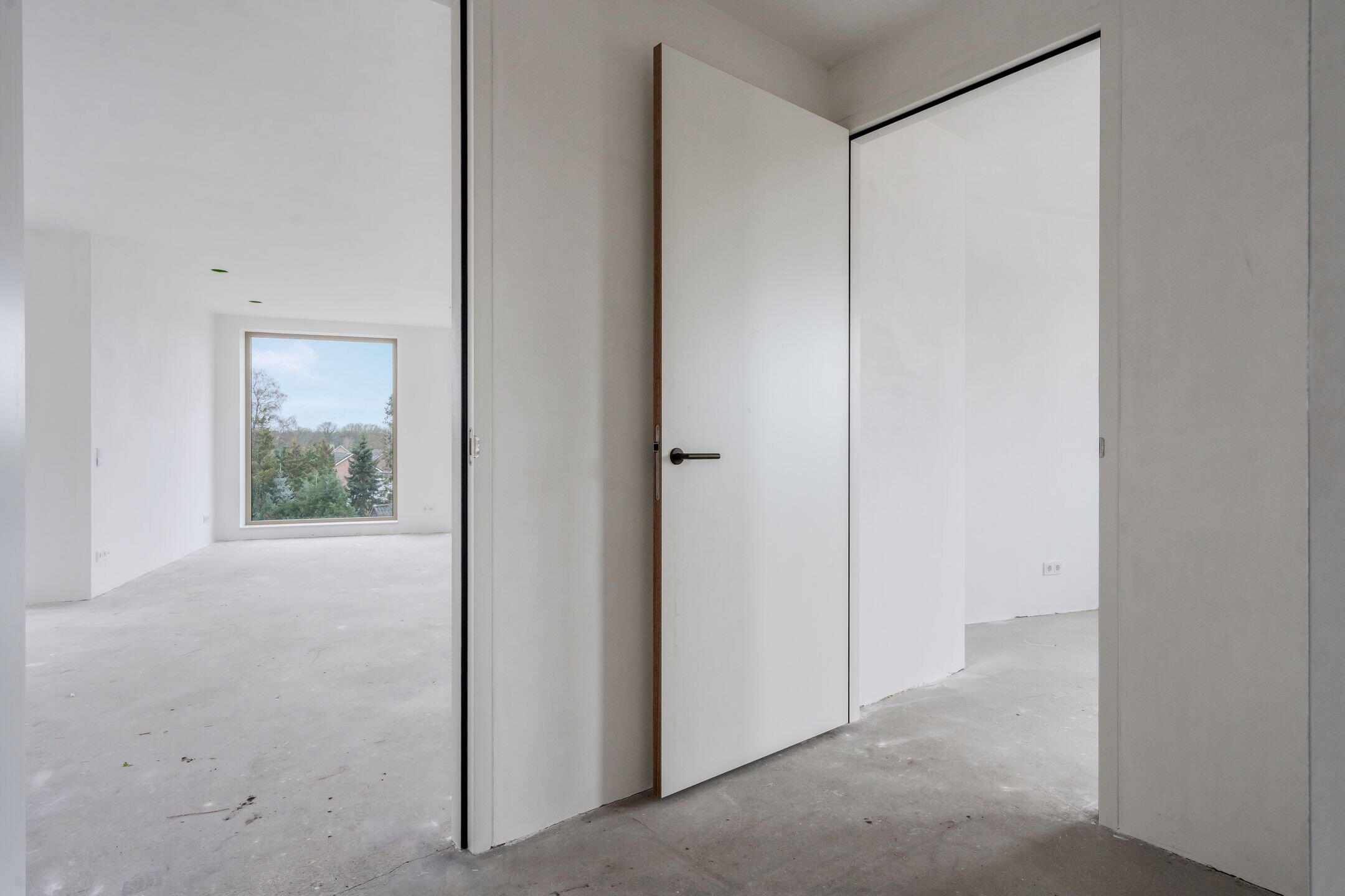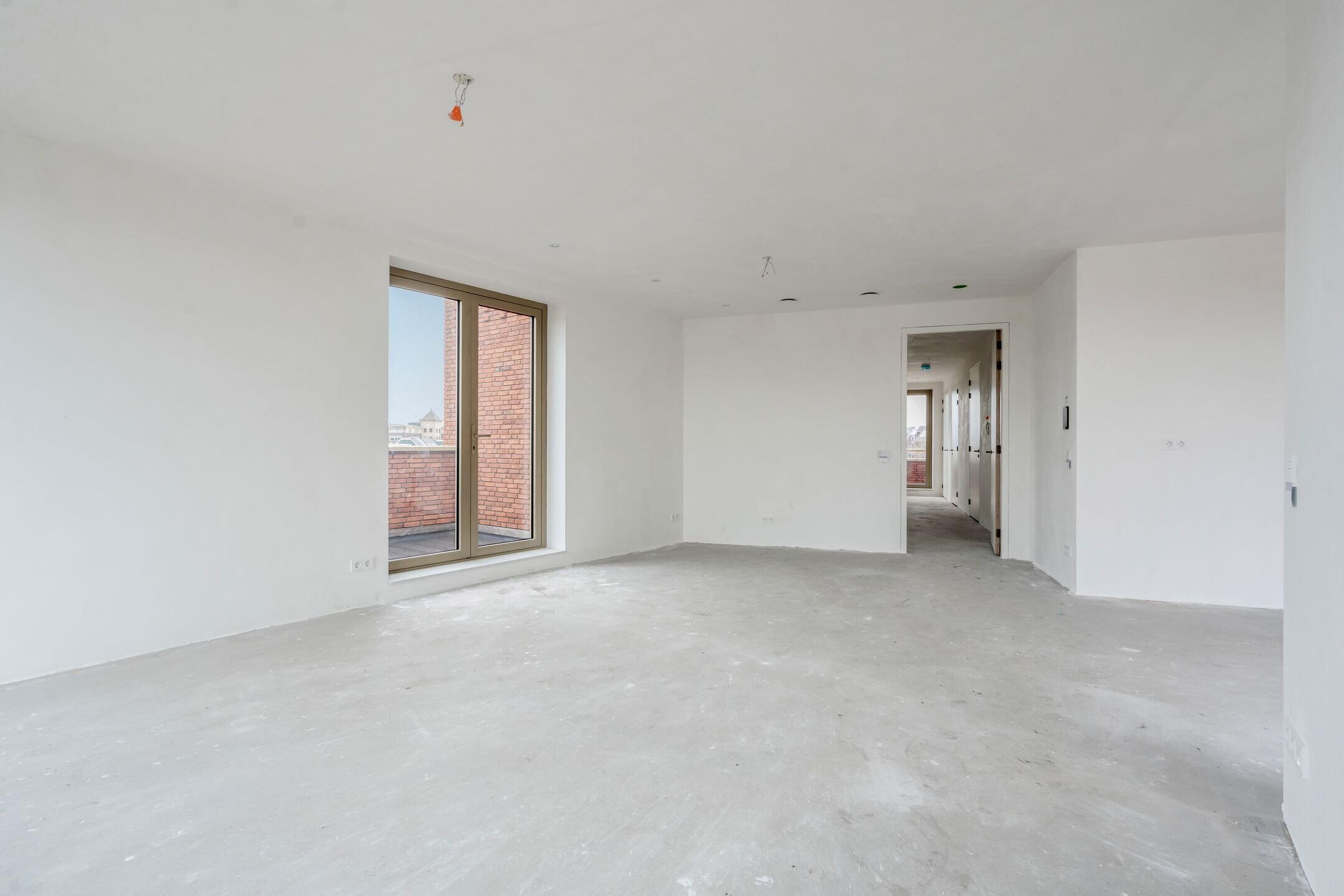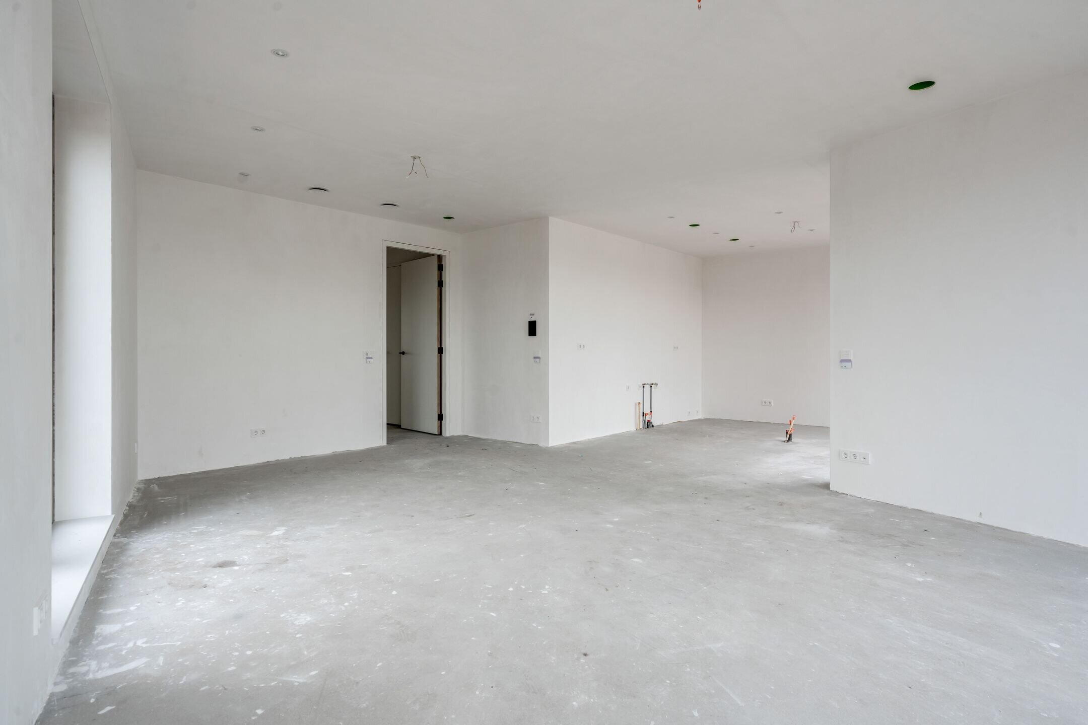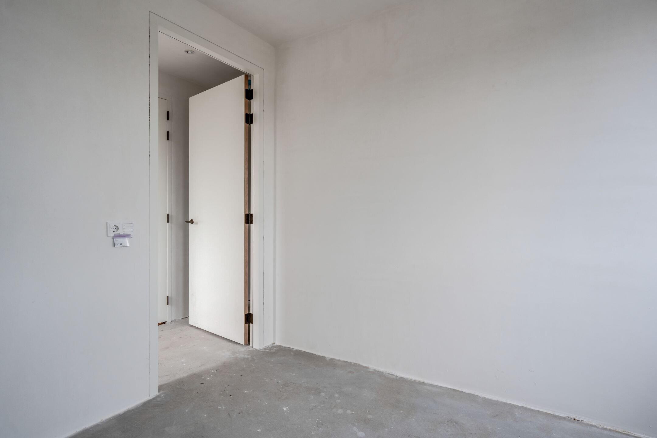 2e etage: ruime entree/hal met toegang tot de royale woonkamer met open keuken, gezamenlijk groot circa 46 m², met directe toegang tot het dakterras van 12 m². Verder beschikt het appartement over drie slaapkamers van respectievelijk circa 8 m², 12 m² en 16 m². Daarnaast zijn er een ruim toilet, een technische ruimte met tevens een praktische bijkeuken en een badkamer met mogelijkheden voor een royale inloopdouche, twee wastafels, een tweede toilet en optioneel een ligbad. Aan het einde van de gang bevindt zich nog een extra balkon.